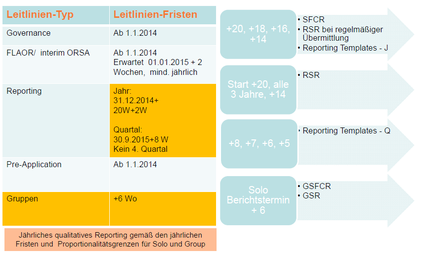 Integraler Bestandteil der Berichterstattung ist ferner eine große Anzahl von Meldeformularen (Quantitative Reporting Templates – kurz: QRTs), deren Inhalte teils quartalsweise, teils jährlich an die Aufsichtsbehörden zu melden sind.